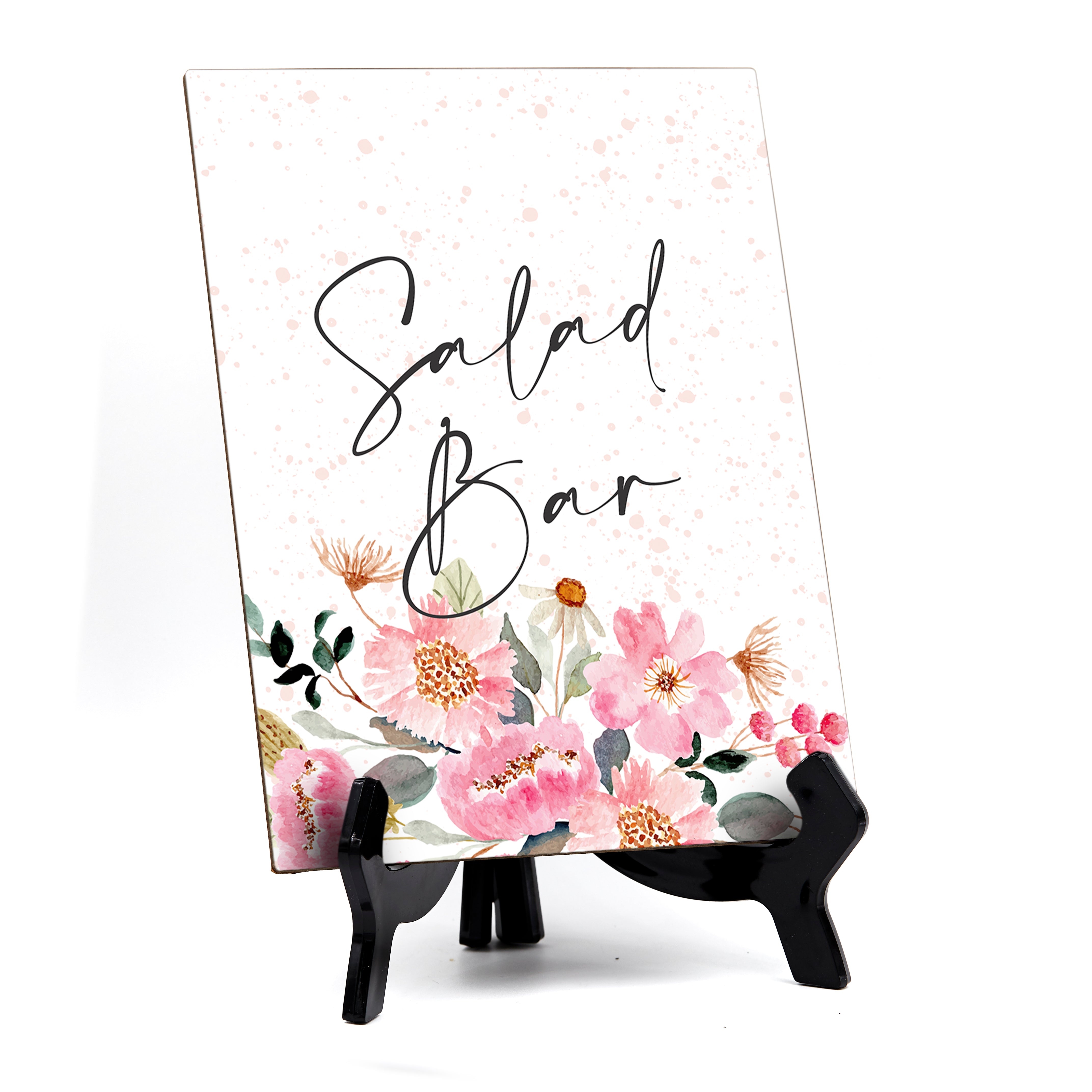 Salad Bar Table Sign with Easel, Floral Watercolor Design (6" x 8")