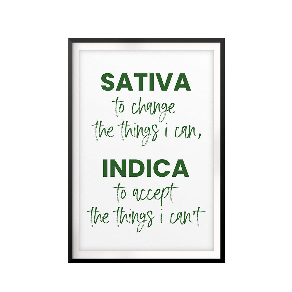 Sativa To Change The Things I Can, Indica To Accept The Things I Can't UNFRAMED Print Stoner Wall Art