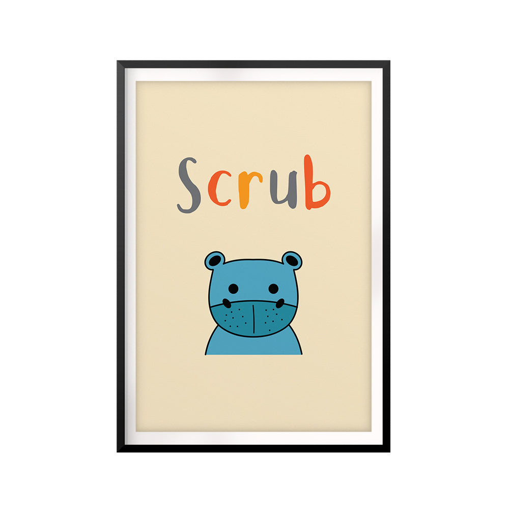 Scrub Cute Hippo UNFRAMED Print Kids Bathroom Wall Art