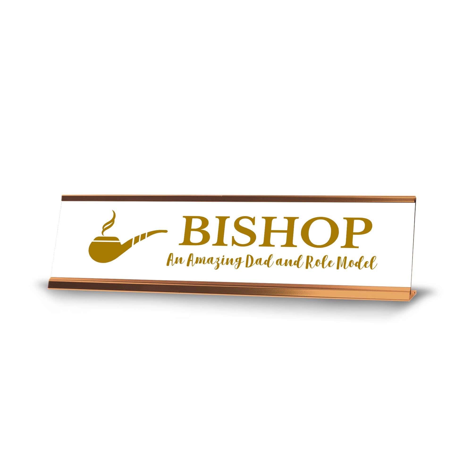 Signs ByLITA Novelty Desk Sign Nameplate "Bishop An Amazing Dad and Role Model". Fun novelty desk sign gift idea for friends, family colleagues, bosses, managers and more. The premium sublimated plastic nameplate comes with a sturdy colored aluminium frame. Great office or desk sign for letting them know the bishop dad.
