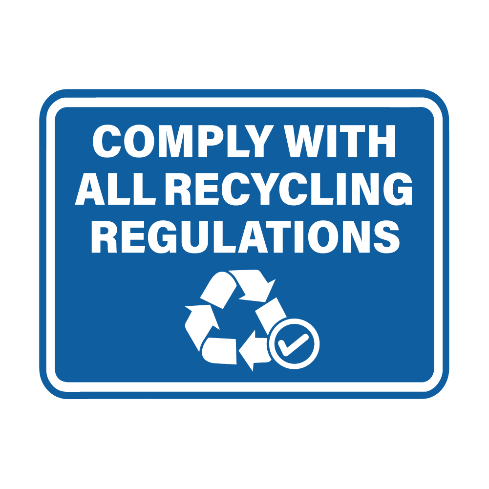 Our Signs ByLITA Classic Framed Comply With All Recycling Regulations Sign can be attached to the door, wall or window of your home or business. The sign text and design work is laser engraved into sturdy plastic. Each sign comes with an adhesive foam backing, allowing them to be attached to any flat surface. Comes in multiple colors. Our trash signs are great for your home or business.