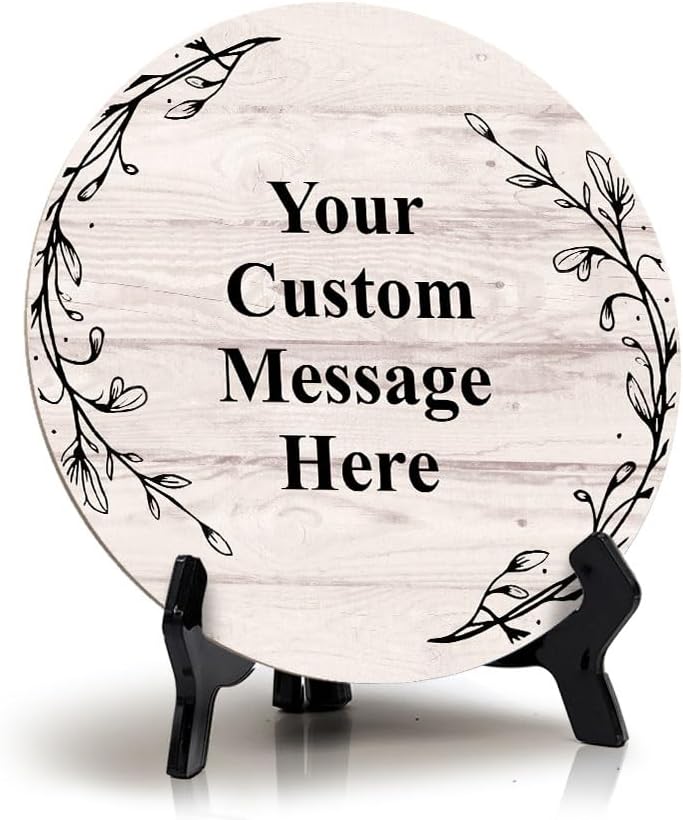 Signs ByLITA Custom Personalized Circle Table Sign (5" x 5") Wreath Designs | MDF Hardboard With Printed Wood Effect | Write Your Own Message | Design Your Sign | Motivational Messages |…