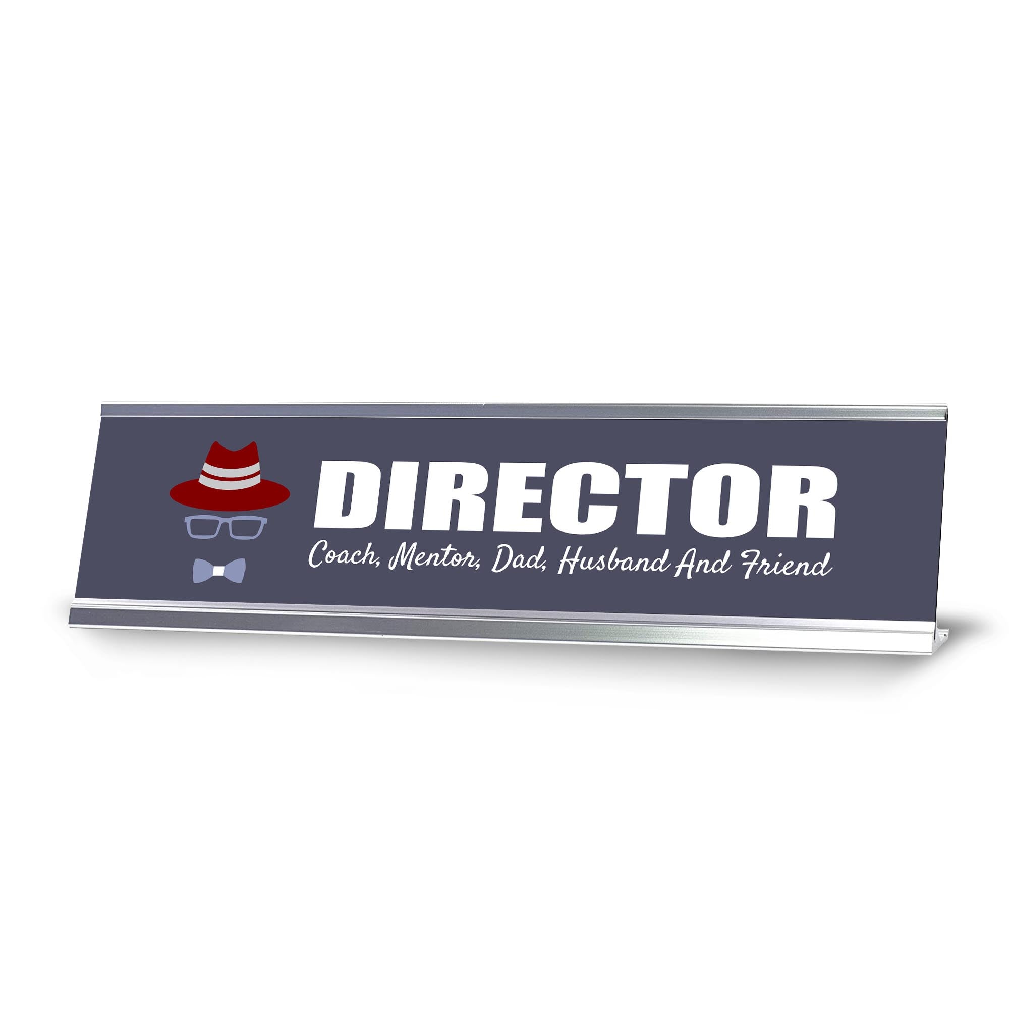 Signs ByLITA Novelty Desk Sign Nameplate "Director, Coach, Mentor, Dad, Husband and Friend". Fun novelty desk sign gift idea for friends, family colleagues, bosses, managers and more. The premium sublimated plastic nameplate comes with a sturdy colored aluminium frame. Great office or desk sign for letting them know the Director dad.