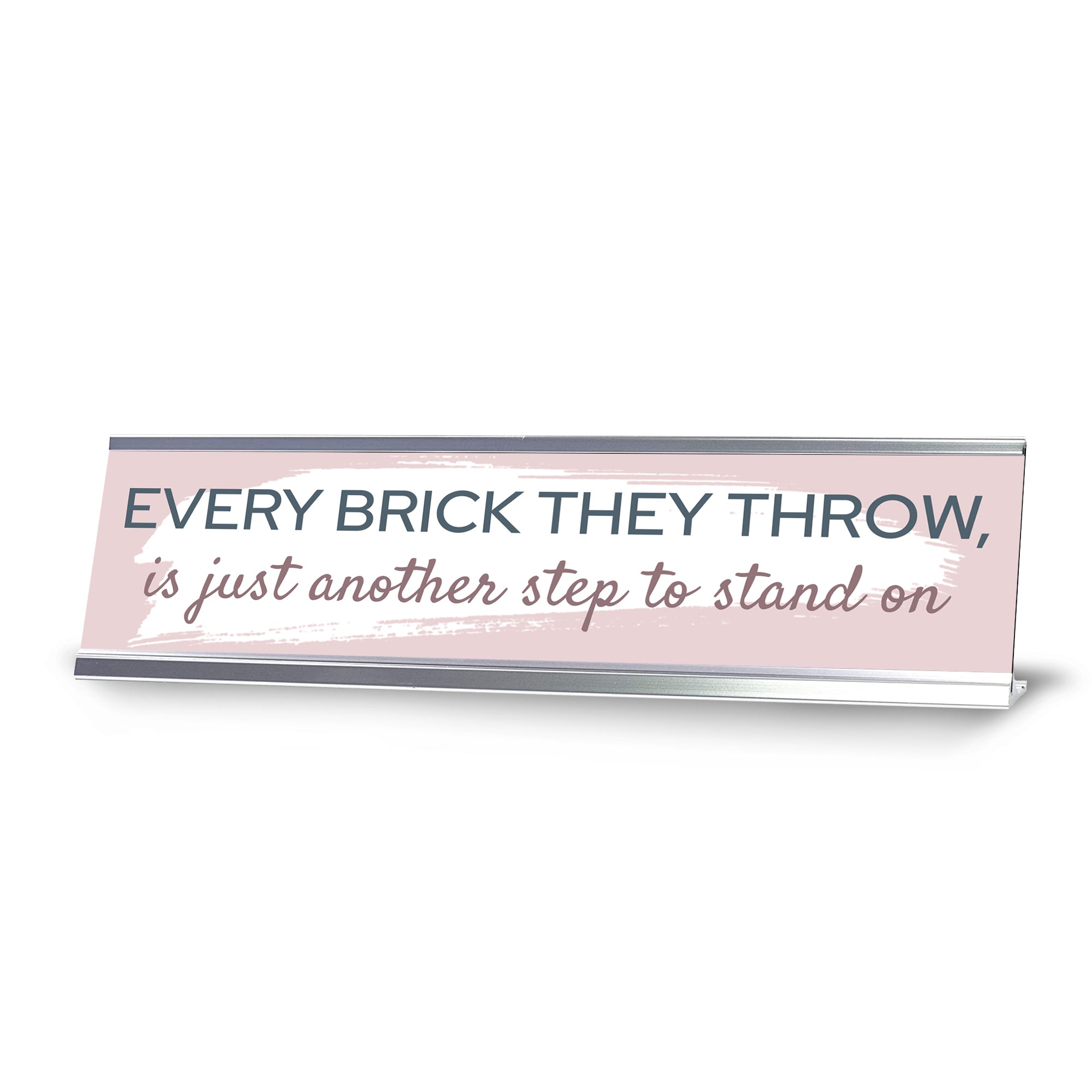 Signs ByLITA Novelty Desk Sign Nameplate "Every Brick They Throw, Is Just Another Step to Stand On". Fun novelty desk sign gift idea for friends, family colleagues, bosses, managers and more. The premium sublimated plastic nameplate comes with a sturdy colored aluminium frame. Great office or desk sign for letting them know them know that every brick is a stepping stone to stand on.