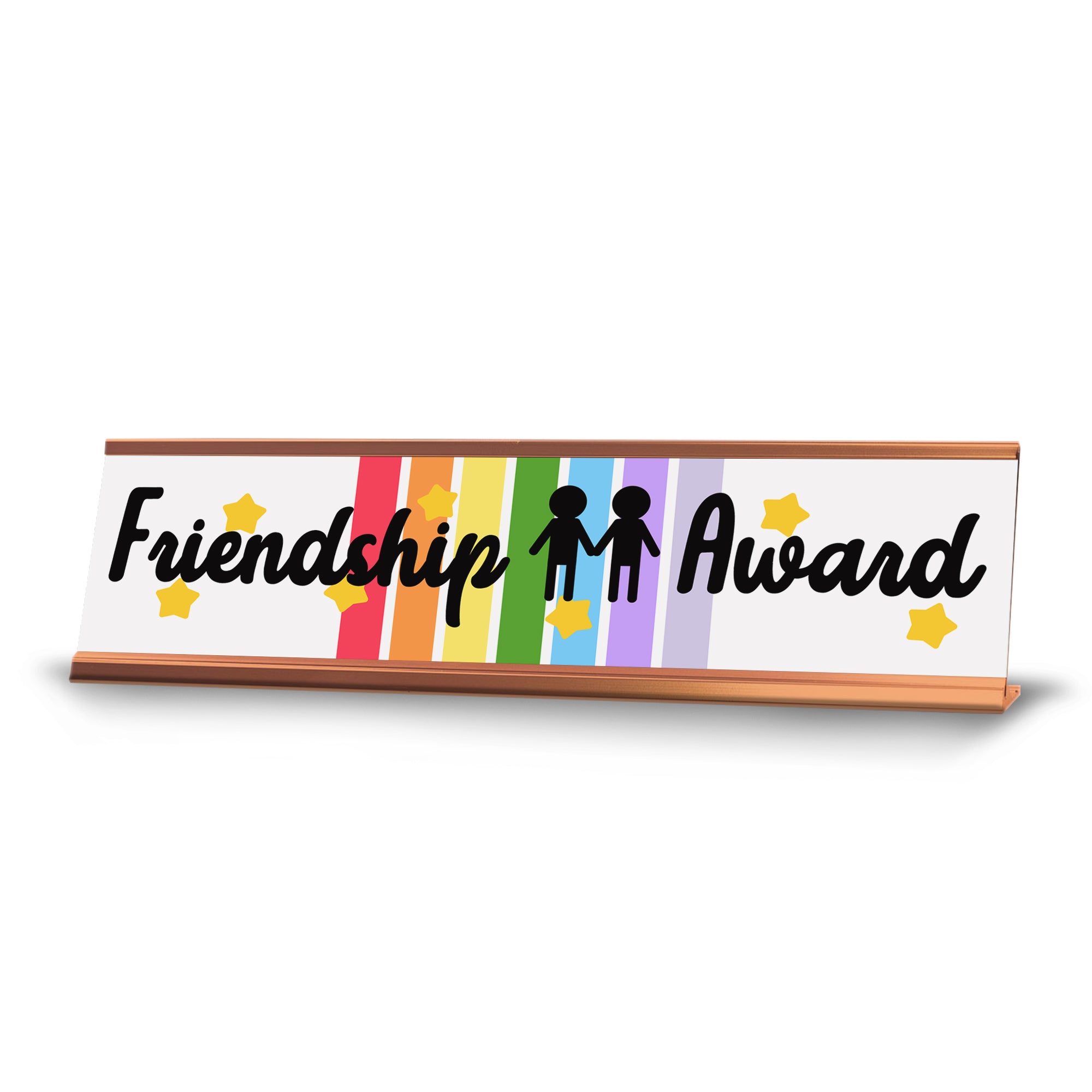 Signs ByLITA Novelty Desk Sign Nameplate "Friendship Award". Fun novelty desk sign gift idea for friends, family colleagues, bosses, managers and more. The premium sublimated plastic nameplate comes with a sturdy colored aluminium frame. Great office or desk sign for letting them know the friendship awardee.