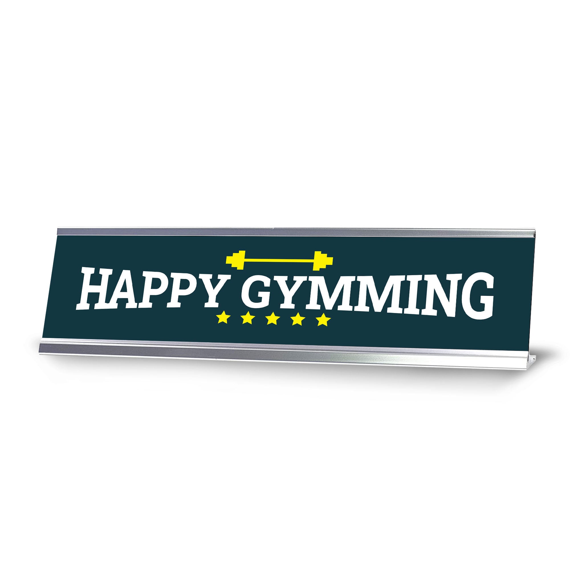 Signs ByLITA Novelty Desk Sign Nameplate "Happy Gymming". Fun novelty desk sign gift idea for friends, family colleagues, bosses, managers and more. The premium sublimated plastic nameplate comes with a sturdy colored aluminium frame. Great office or desk sign for letting them knowto have a happy gymming.