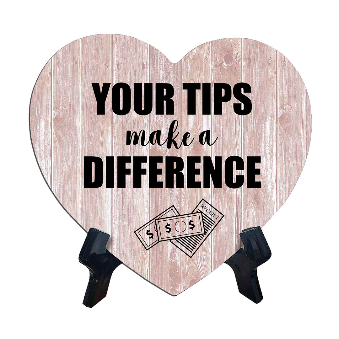 Your Tips Make a Difference, Wood Color, Heart Table Sign. This table sign comes with it's own...