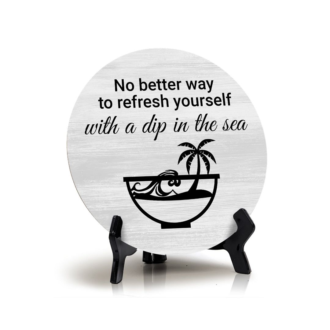 Signs ByLITA Round No Better Way To Refresh Yourself With a Dip in The Sea, Table Sign (5x5")