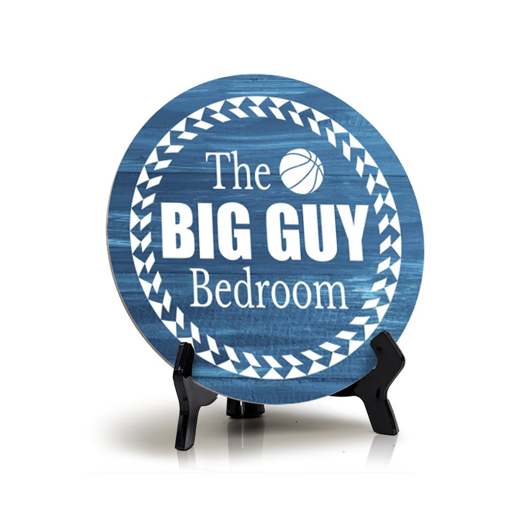 The Big Guy Bedroom Circle Table Sign. This table sign comes with it's own black acrylic easel, easy to set up and display on any flat surface.