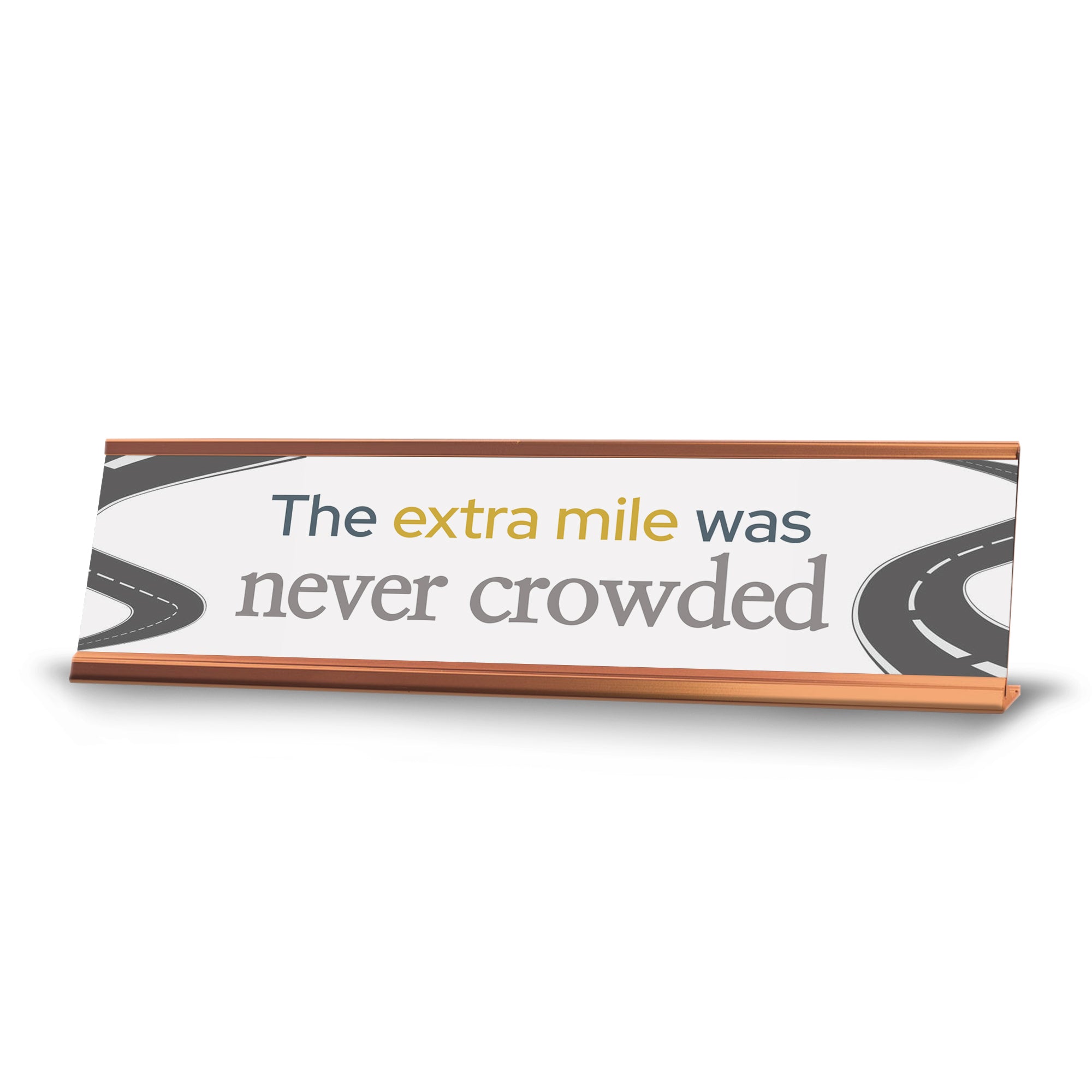 Signs ByLITA Novelty Desk Sign Nameplate "The extra mile was never crowded". Fun novelty desk sign gift idea for friends, family colleagues, bosses, managers and more. The premium sublimated plastic nameplate comes with a sturdy colored aluminium frame. Great office or desk sign for letting them know that the extra mile was never crowded.