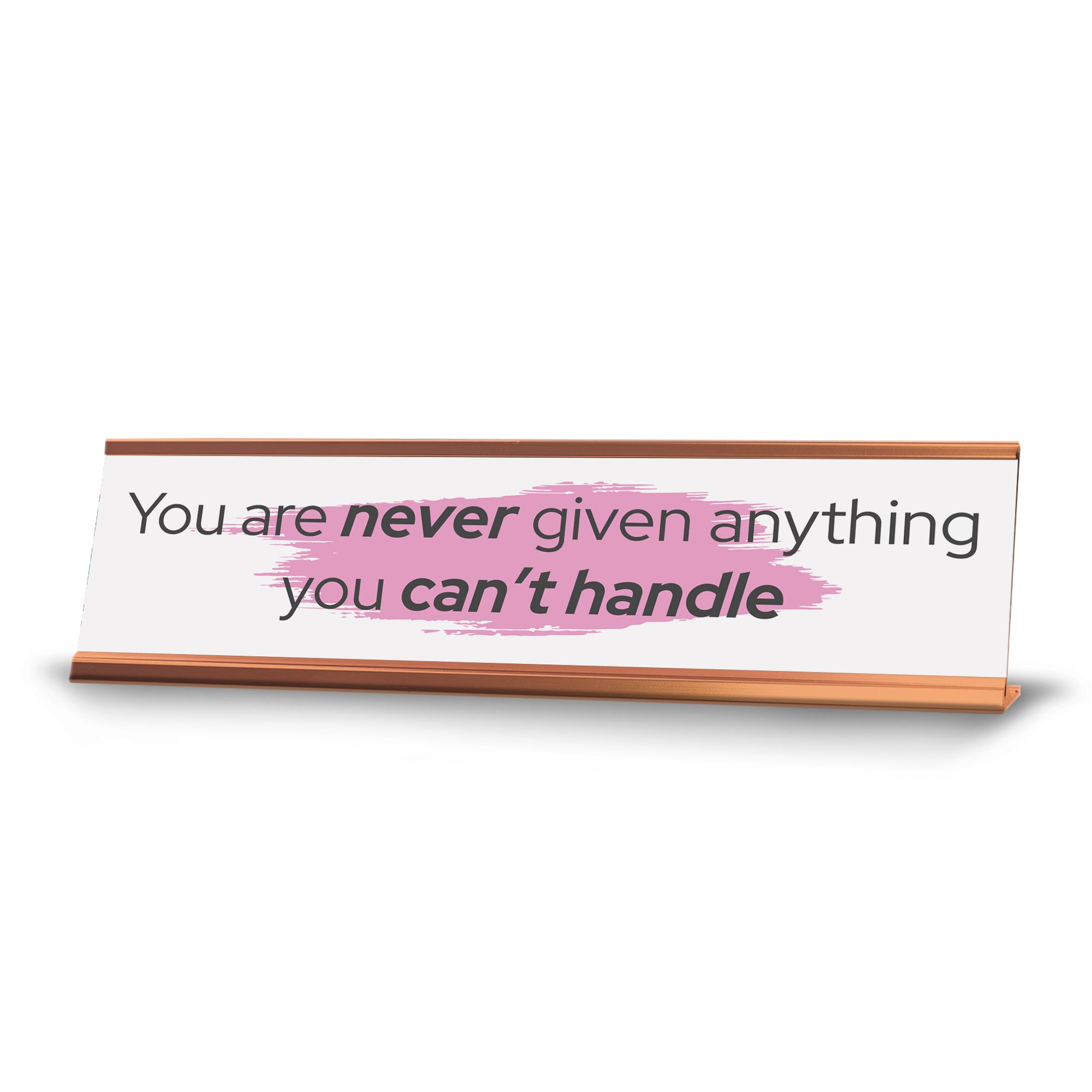 Signs ByLITA Novelty Desk Sign Nameplate "You Are Never Given Anything You Can't Handle". Fun novelty desk sign gift idea for friends, family colleagues, bosses, managers and more. The premium sublimated plastic nameplate comes with a sturdy colored aluminium frame. Great office or desk sign for letting them know that everything you can handle.
