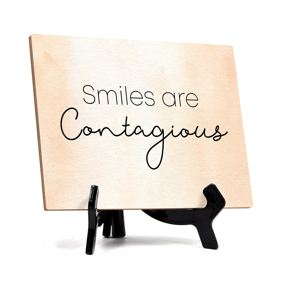 Smiles are contagious Table or Counter Sign with Easel Stand, 6" x 8"