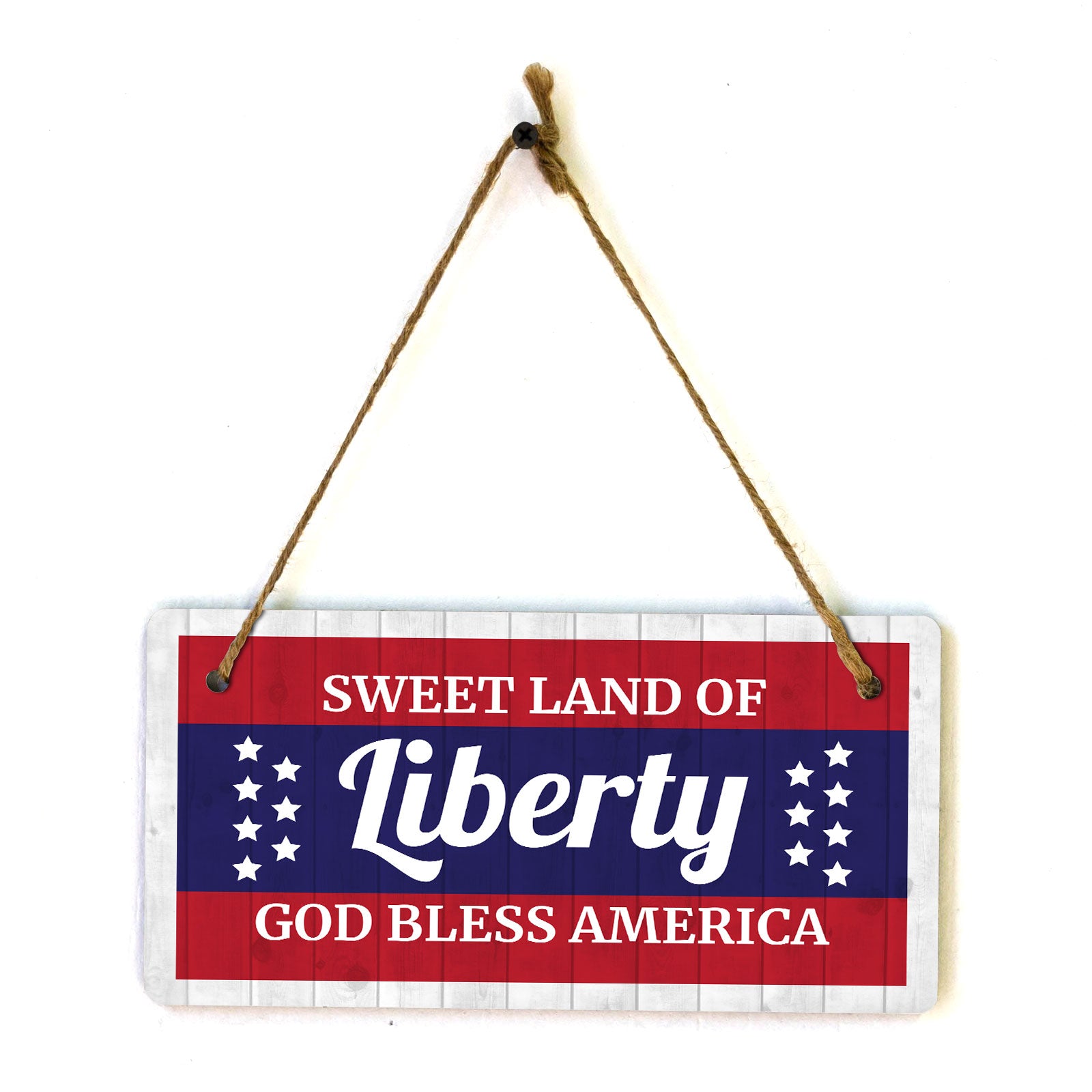 Sweet Land Of Liberty God Bless America 5x10 Hanging Plus Wall or Door Sign | American Pride