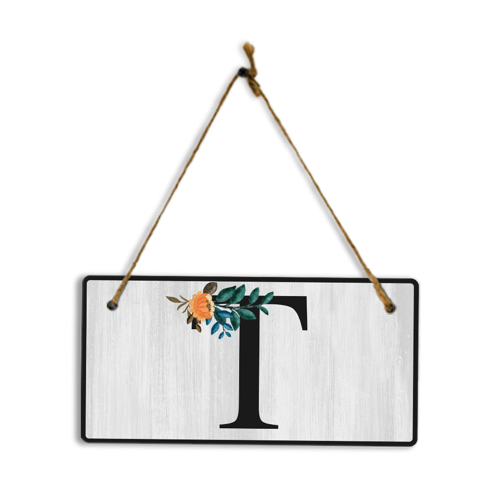 T Flower Decor 5x10 Hanging Wall or Door Sign | Alphabet Letter Room Decoration