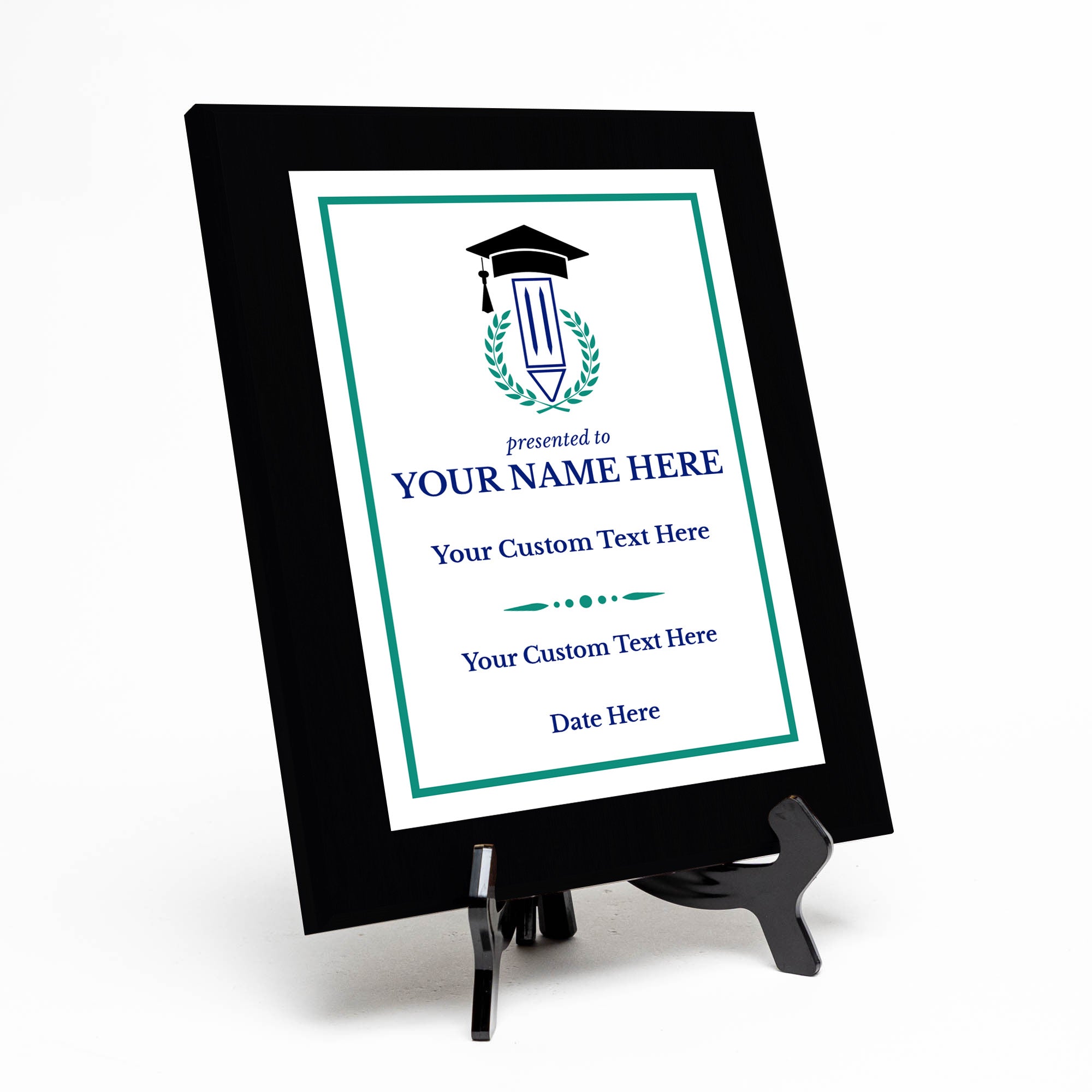Teacher Recognition Customizable Black Frame Award Plaque | Easel Mount Option | Achievement and Service Personalizable Plaques