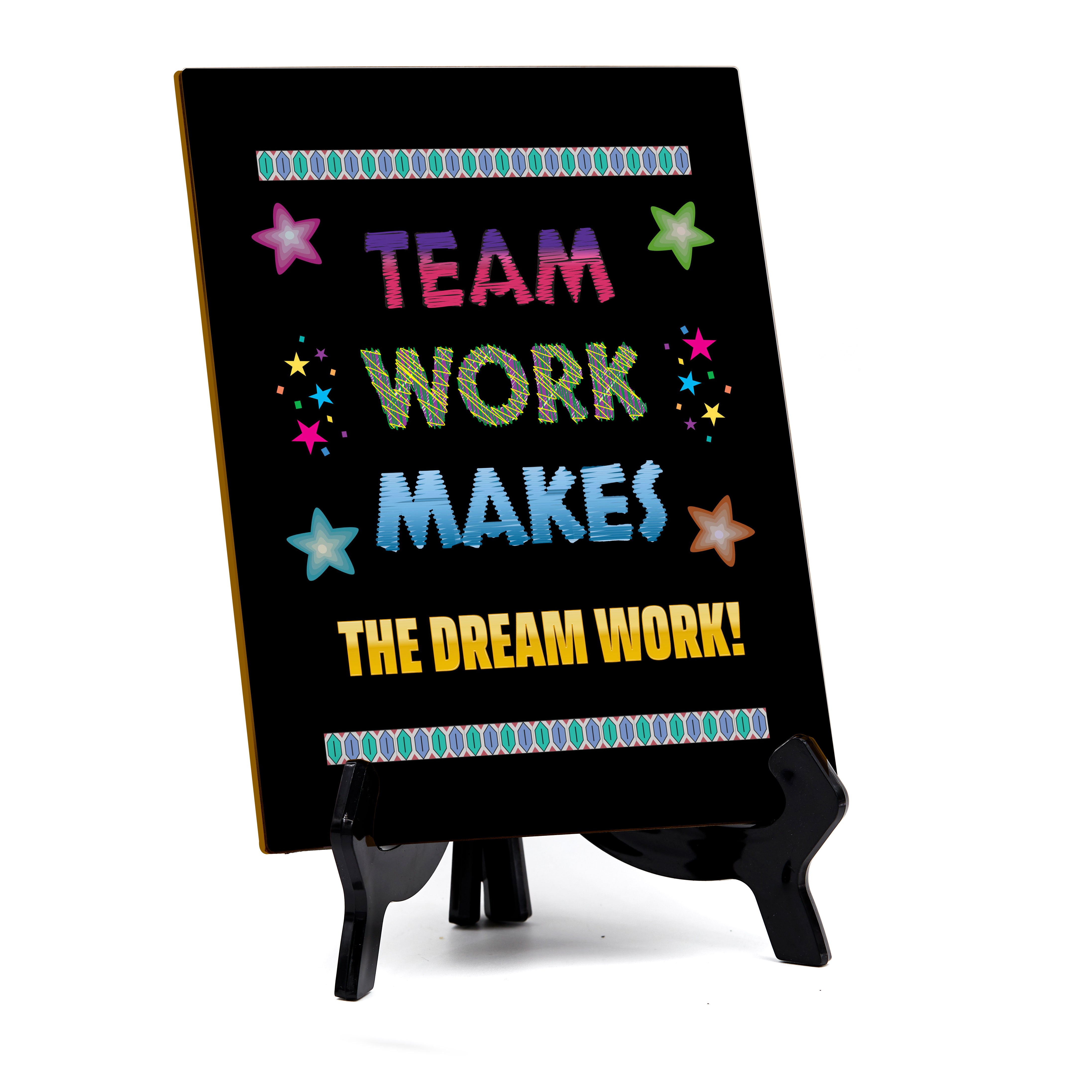 Team Work Makes The Dream Work!, 6X8 Table Sign. This table sign comes with it's own black acrylic easel, easy to set up and display on any flat surface.