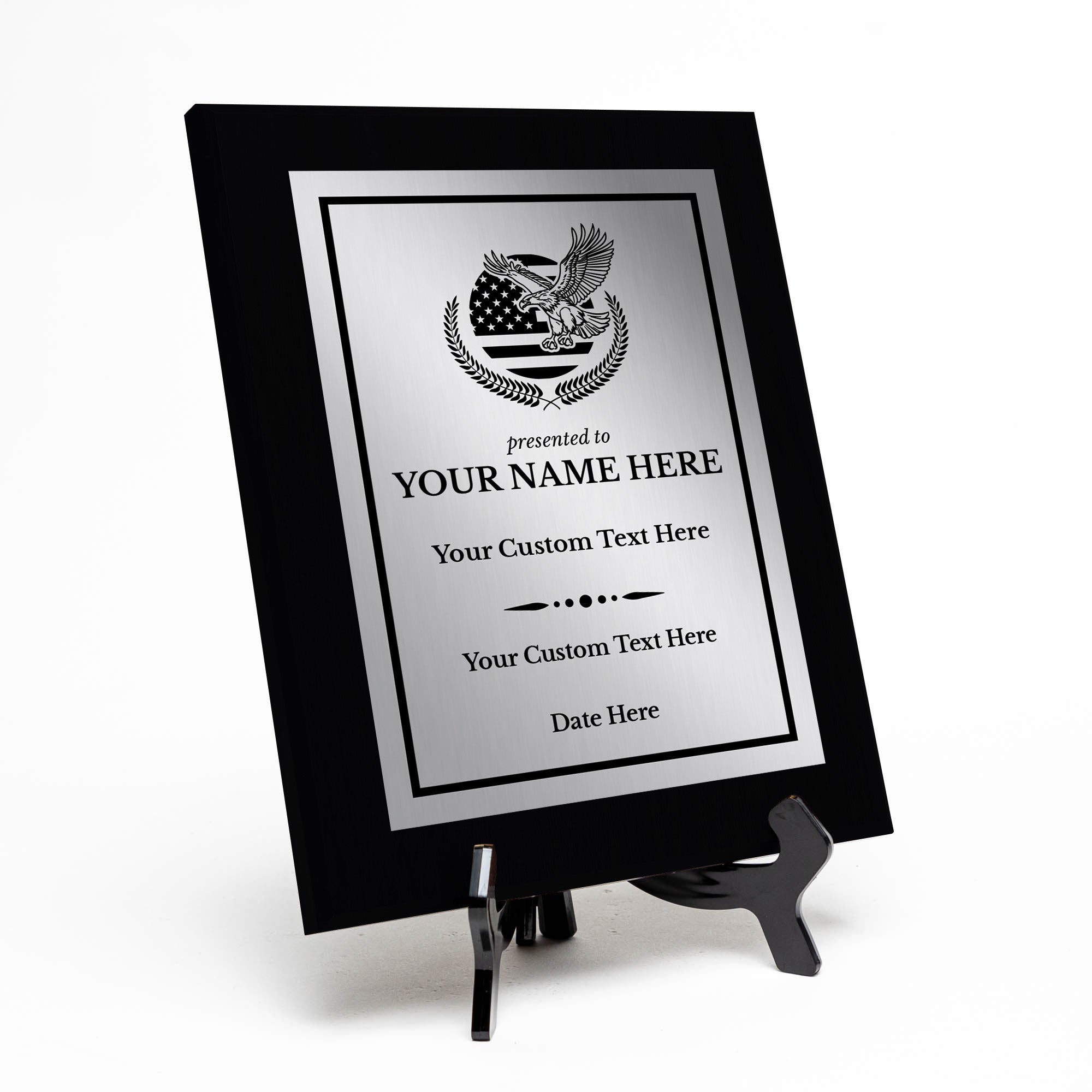 Celebrate the extraordinary achievements and milestones in your life with the Signs ByLITA Custom Thank You For Your Service Military and First Responders Award Plaque. This personalized plaque is the perfect way to honor and commemorate special moments, whether it's recognizing a career accomplishment, academic success, or any other noteworthy event. The Custom Thank You For Your Service Military and First Responders Award Plaque is not just a decoration; it's a heartfelt expression of recognition and appreciation. Commemorate your special moments with a personalized touch that will be cherished for years to come. Whether you're celebrating a colleague's outstanding performance, a loved one's academic excellence, or any remarkable accomplishment, this custom plaque will make the moment unforgettable. Enter the name of the award, the recipient's name, the date and a custom message if you would like. Please double check your typing for what you would like engraved, we engrave exactly as we receive the written custom inputs. If you make an error please cancel your order and re-order with your corrected text.