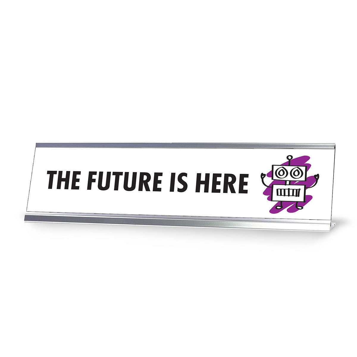 Designs ByLITA Stick People Series Desk Sign "The Future Is Here". Our novelty desk signs are great gift ideas for colleagues, work partners, managers, friends, family or for yourself. Easy to set-up in your office, on your desk, shelf or window ledge. Our nameplates are made out of premium lazer engraved plastic, fitting into a sturdy aluminum frame.