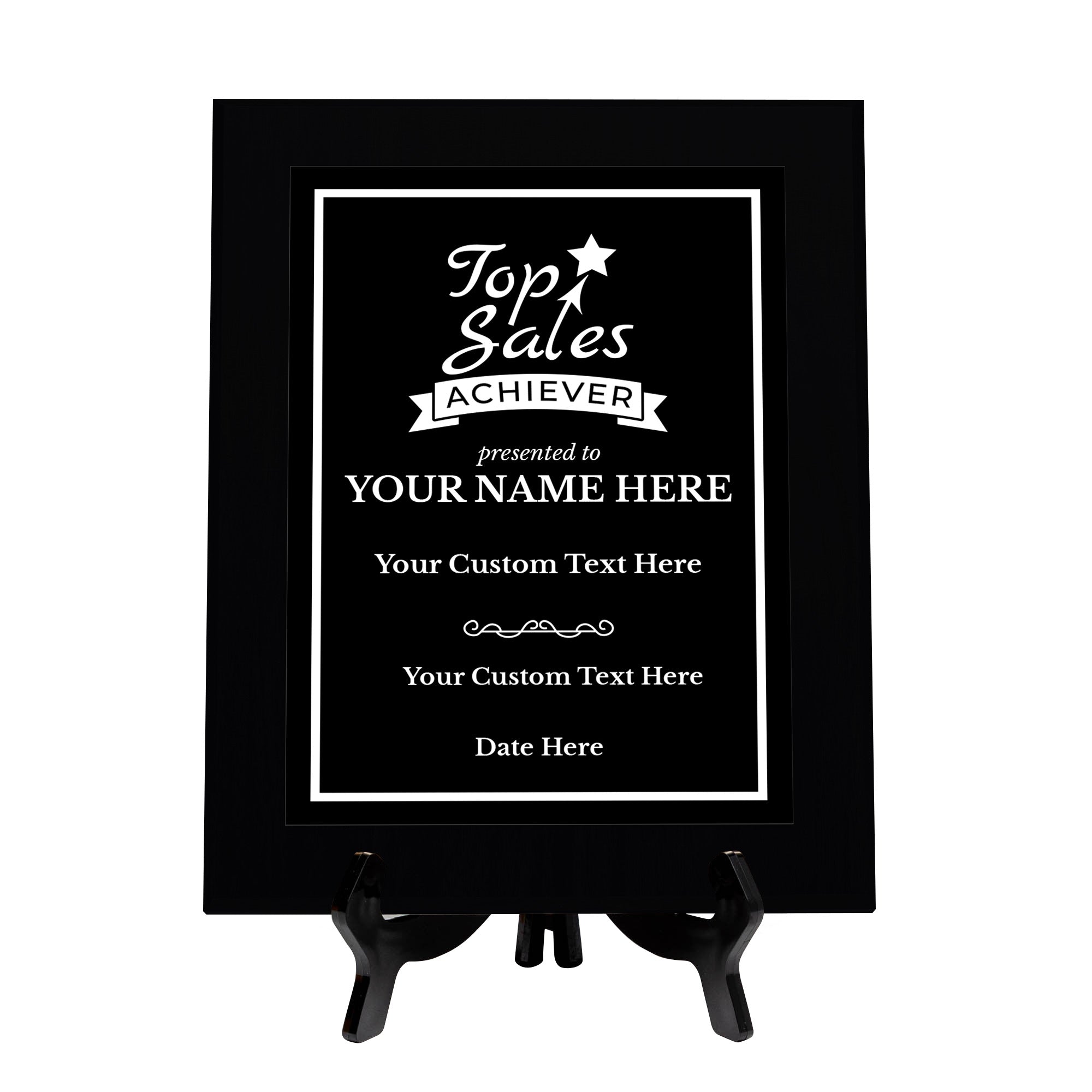 Top Sales Achiever Customizable Black Frame Award Plaque | Easel Mount Option | Achievement and Recognition Personalizable Plaques