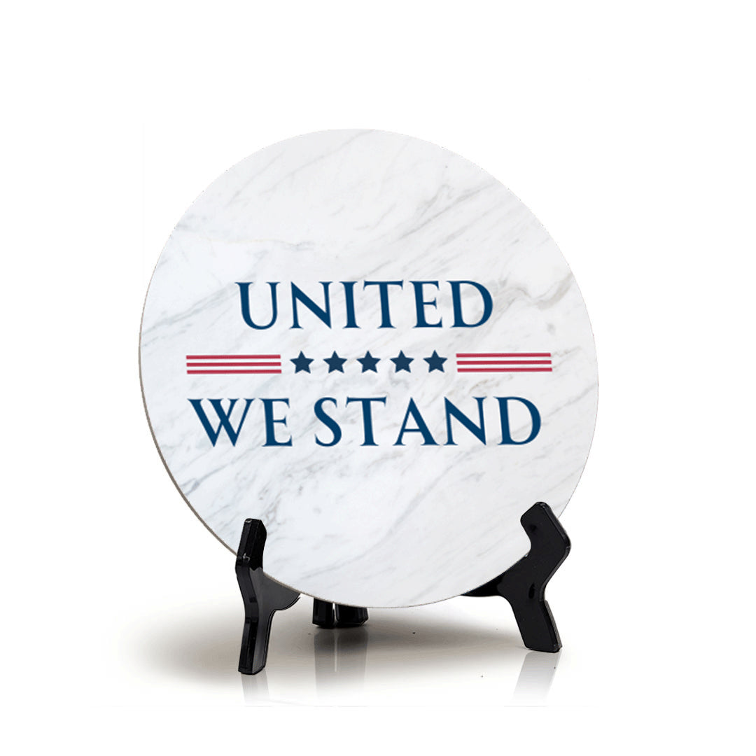 United We Stand (5 x 5“) Circle Table Sign with Acrylic Stand | American Pride Decoration