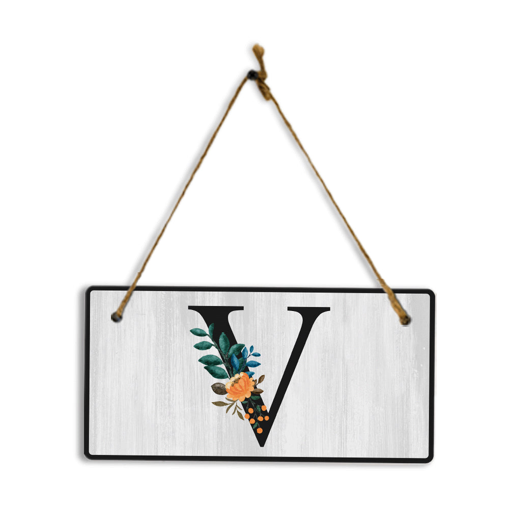 V Flower Decor 5x10 Hanging Wall or Door Sign | Alphabet Letter Room Decoration
