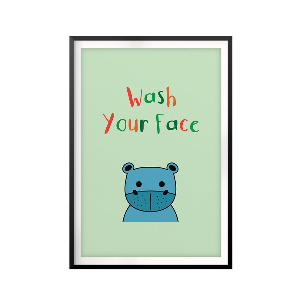 Wash Your Face Cute Hippo UNFRAMED Print Kids Bathroom Wall Art