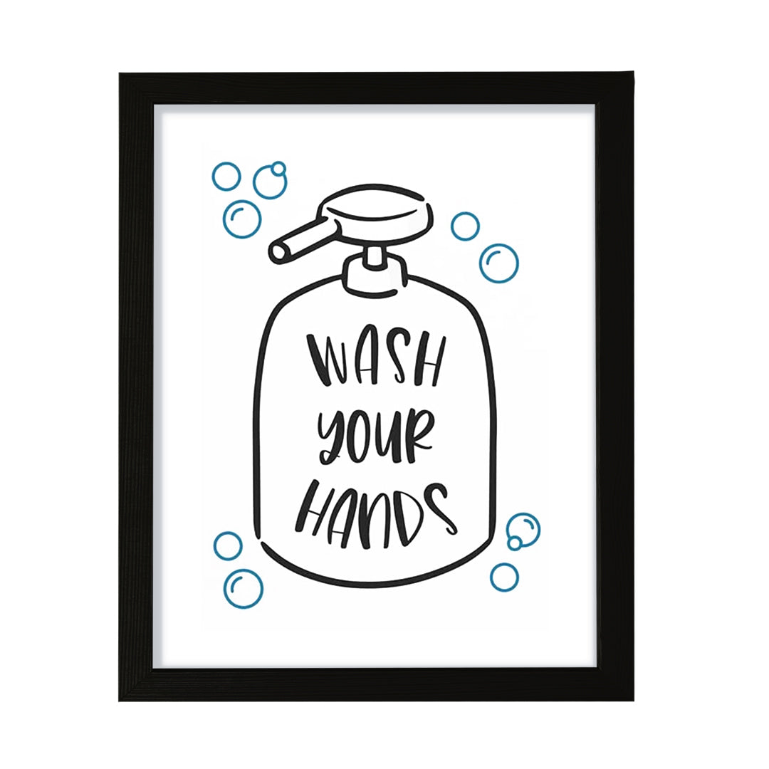Wash Your Hands FRAMED PRINT. Our wall art is available either as a 5" x 7", 8" x 10" or 11" x 14". Printed on 160 GSM high quality card. Comes with a choice of Black, Light Brown or White colored frames. Easy to hang on any wall. This art is great for your home, office, workspace, bathroom or kitchen decor.