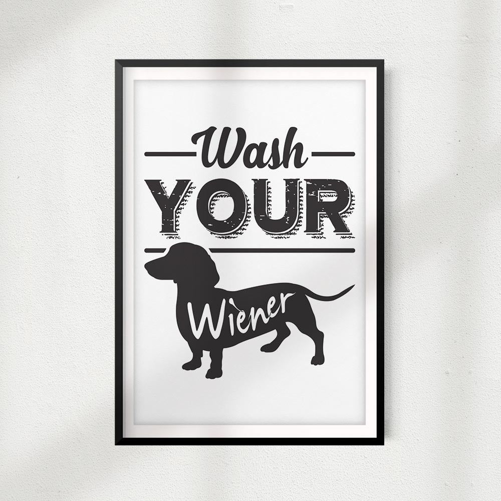 Wash Your Wiener UNFRAMED Print Home Décor, Pet Lover Gift, Bathroom Quote Wall Art