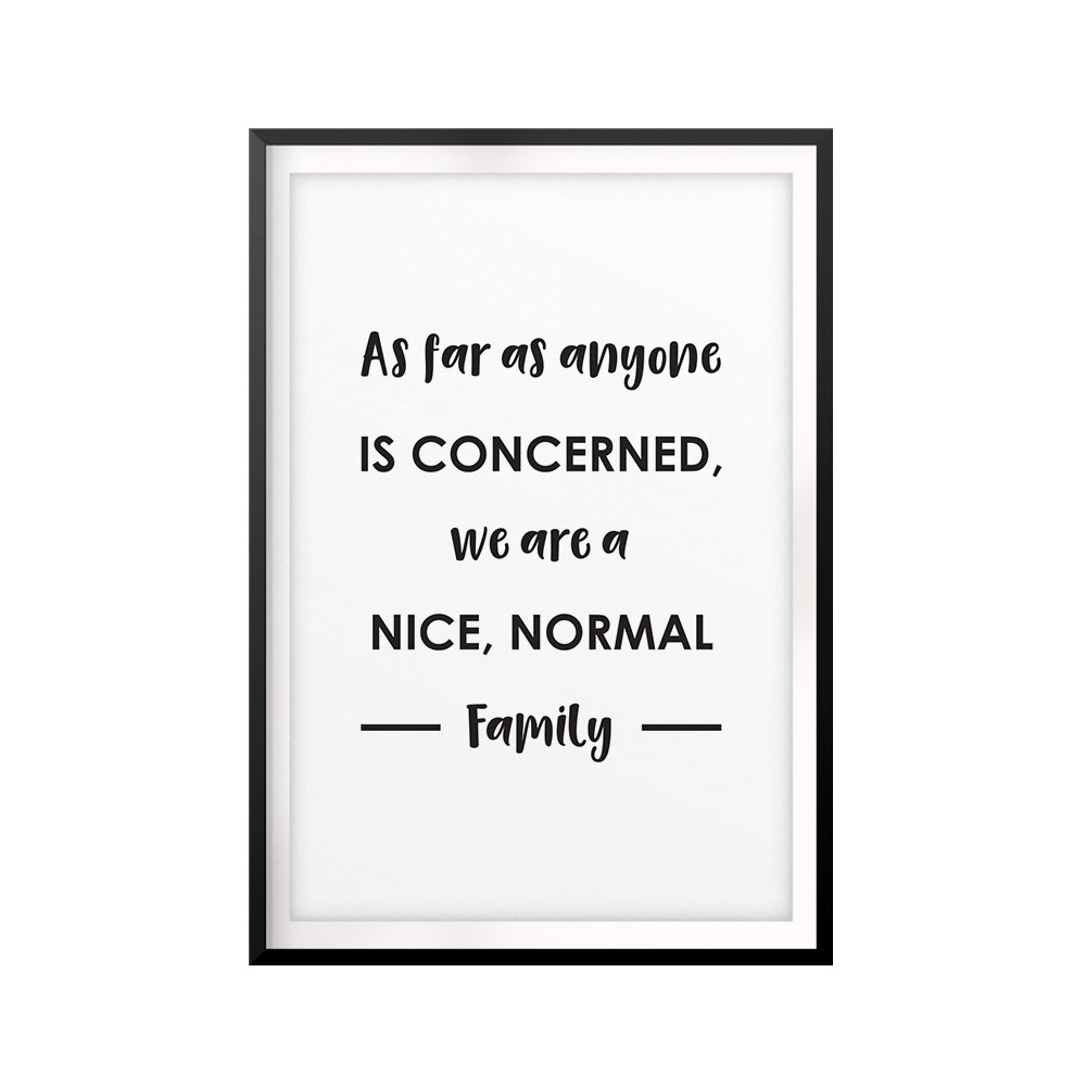 We Are A Nice, Normal Family UNFRAMED Print Funny Quote Wall Art