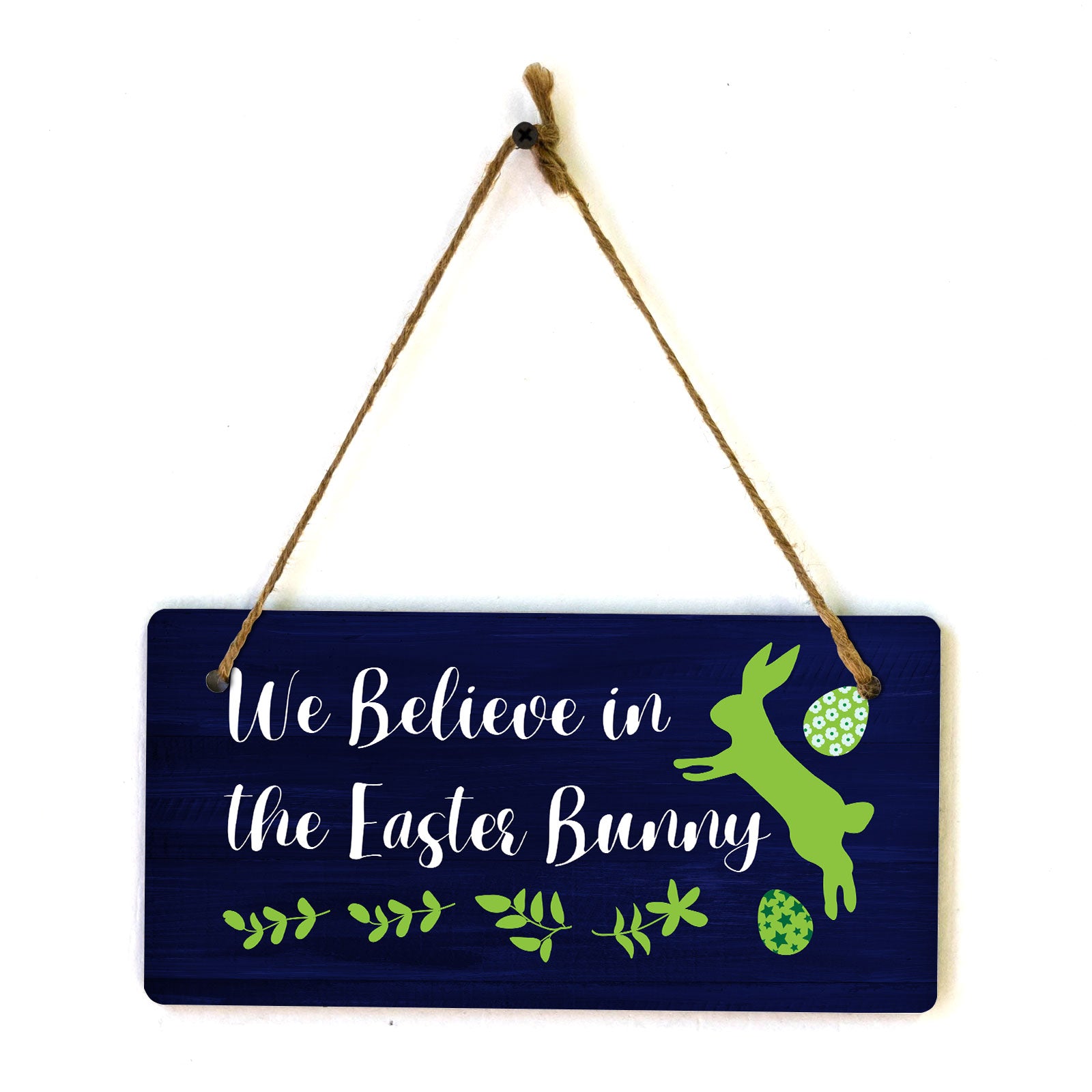 We Believe in the Easter Bunny 5x10 Hanging Wall or Door Sign | Funny Religious Home Decor
