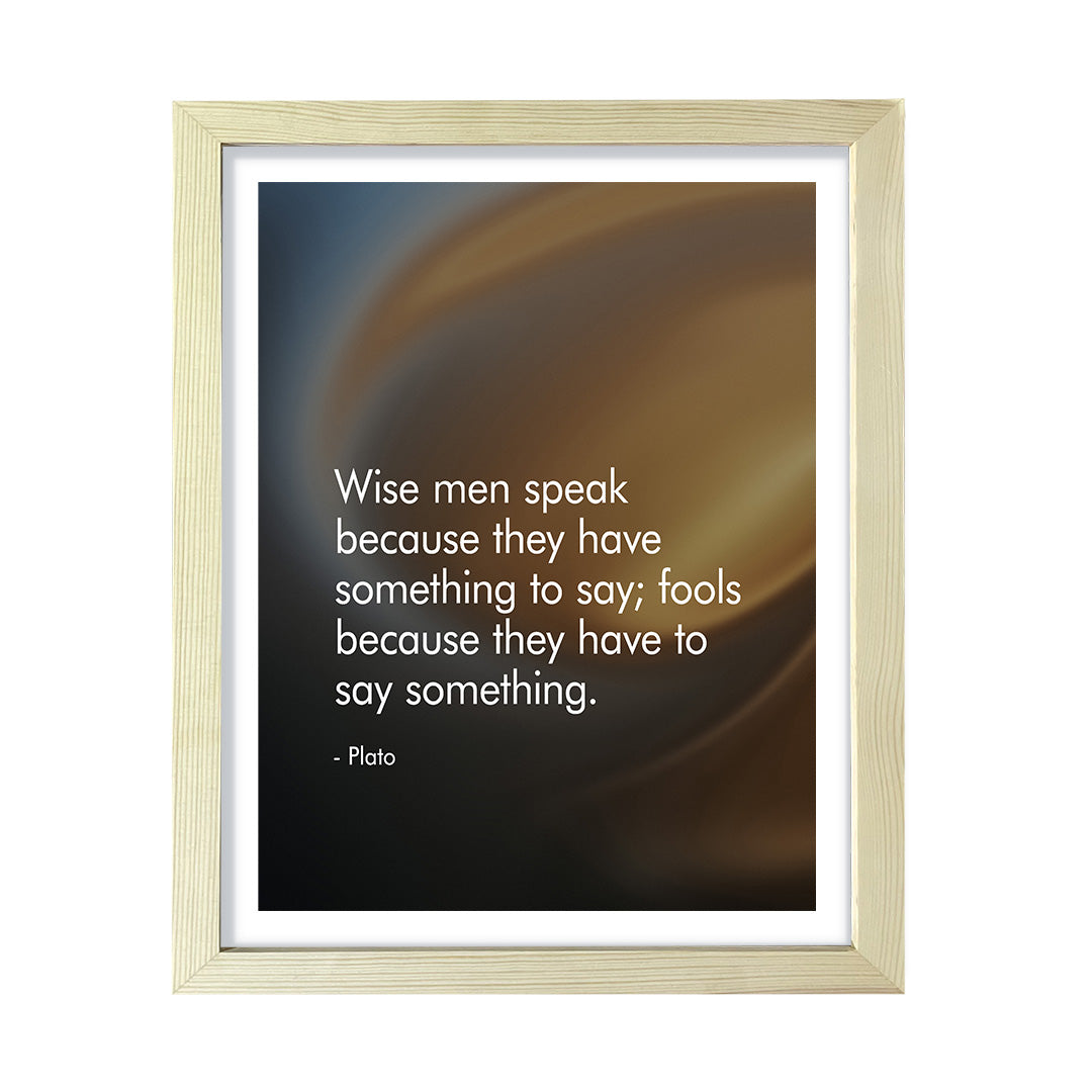 Wise men speak because they have something to say; fools because they have to say something - Plato , FRAMED Print. Our wall art is available either as a 5" x 7", 8" x 10" or 11" x 14". Printed on 160 GSM high quality card. Comes as an FRAMED print. Easy to hang on any wall. This art is great for your home and office decor, and bedroom motivational decoration wall art. Be sure to check out our other designs!