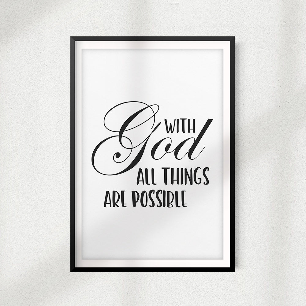 With God All Things Are Possible UNFRAMED Print Home Décor, Quote Wall Art