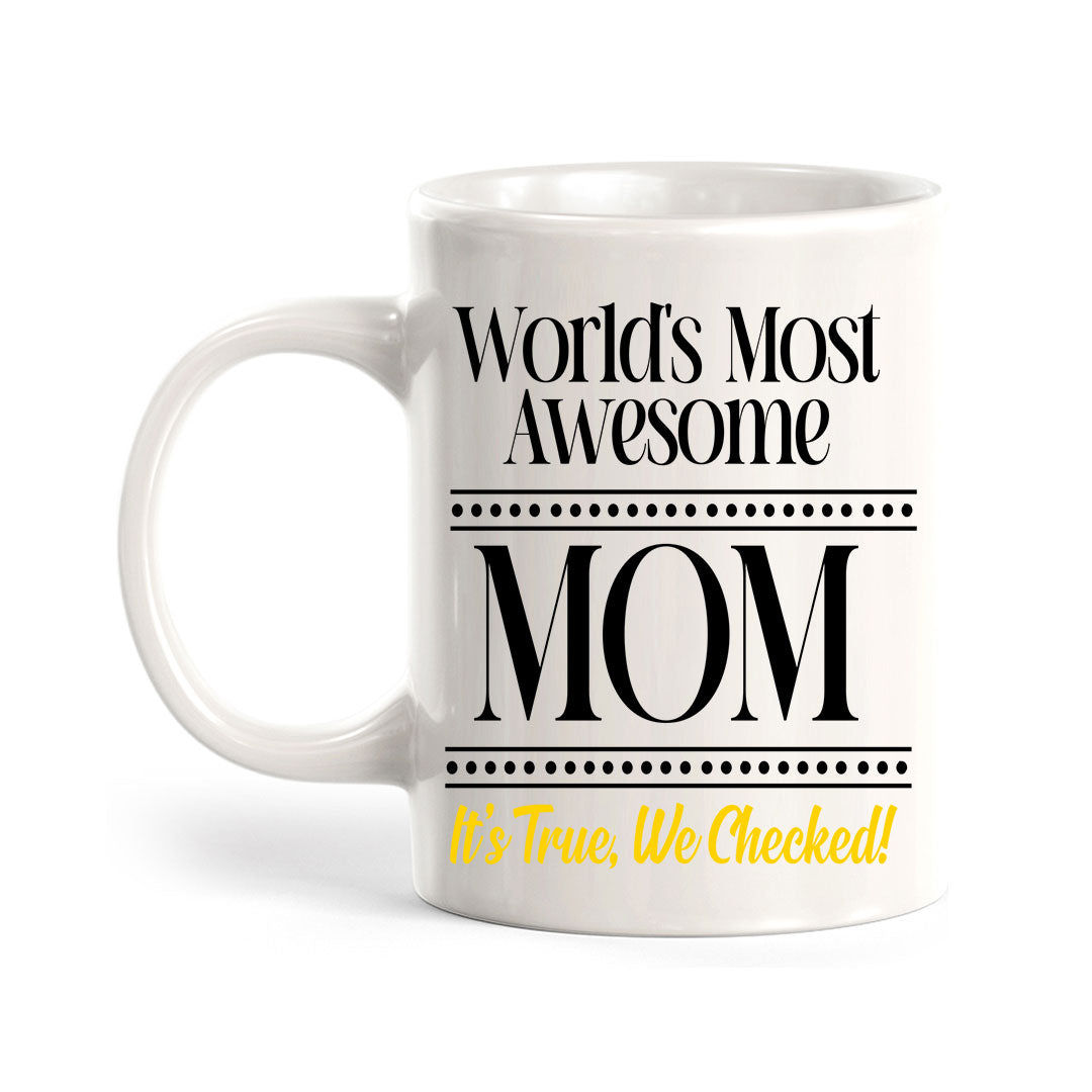 World's Most Awesome Mom It's True, We Checked! Coffee Mug. This mug is great for your home, office or workspace. Perfect gift for your friends and family, be sure to check out our other Funny Office Cups mug designs!