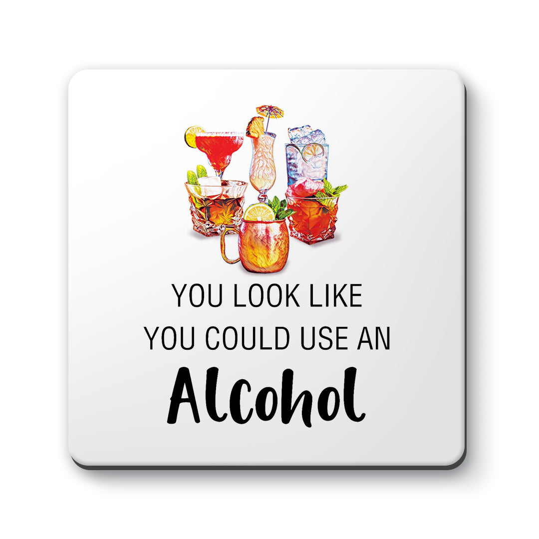 You Look Like You Could Use An Alcohol Cocktails Designs ByLITA Funny Coasters. Chic décor novelty coasters to protect table tops and surfaces. Help protect your kitchen tabletops, coffee tables, counters and more with our fun, high quality coasters. Fun small gift idea for your home, office kitchen, hospitality venue or business. You are guarenteed to amuse your guests with these funny drinkware coasters and at the sametime help look after your tabletops and coffee tables. Made out of solid mdf hardboard these coasters are perfect for your needs.